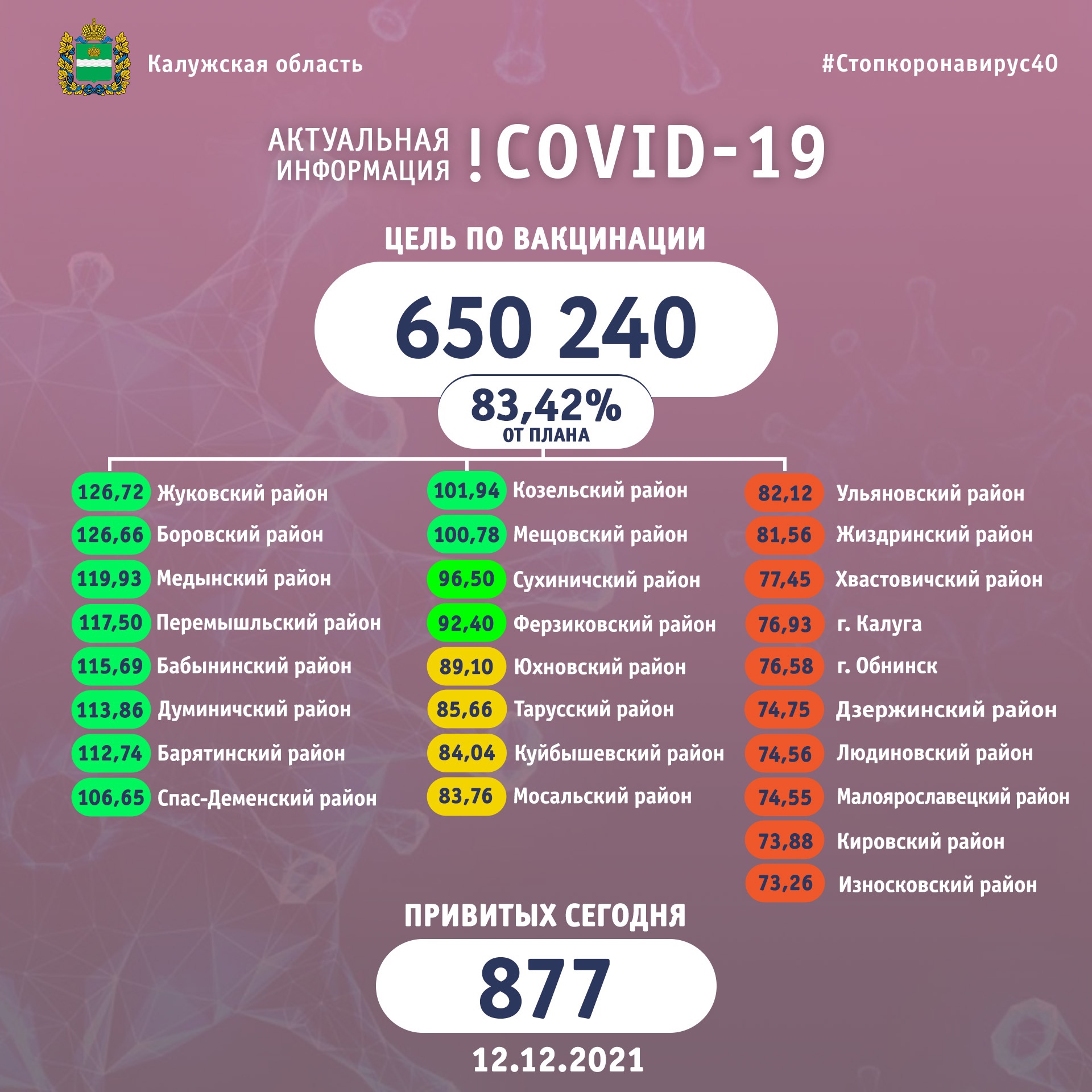 Выполнение плана по вакцинации от коронавируса в районах Калужской области на 12 декабря 2021 года: