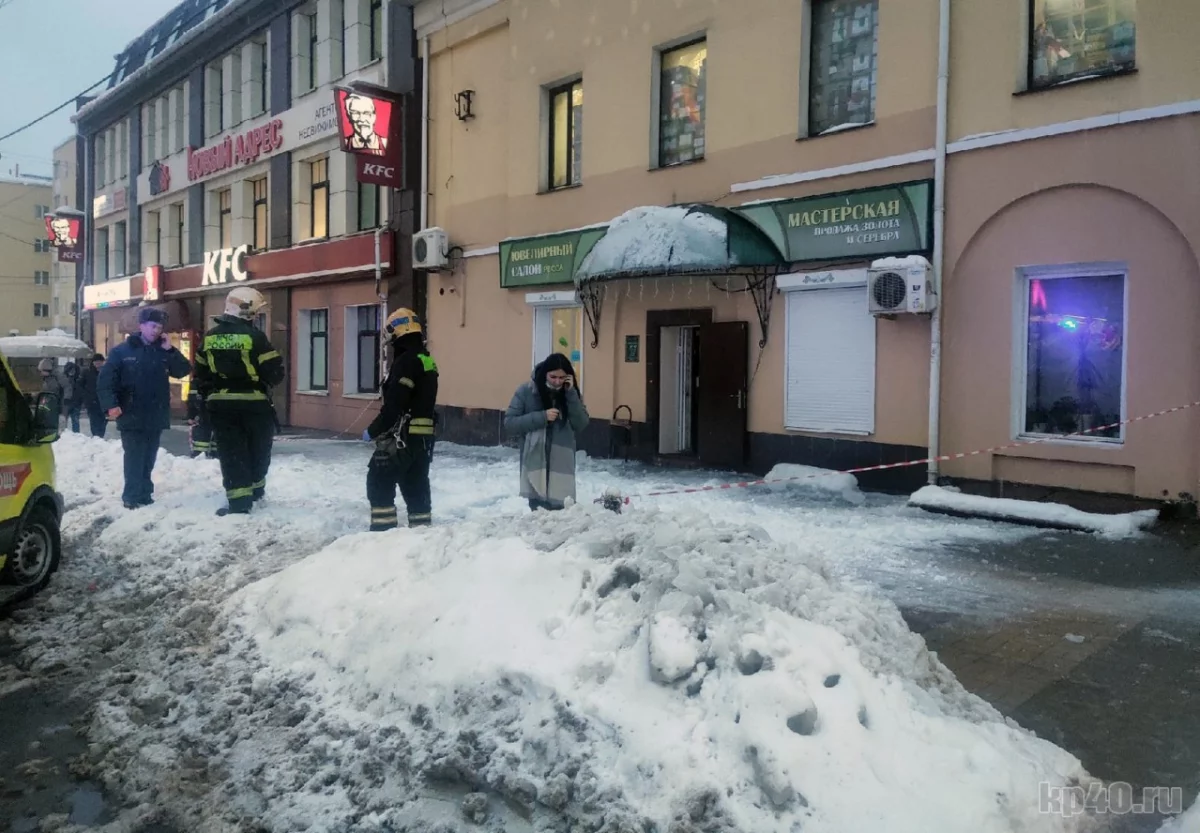 В Калуге три человека пострадали при падении снега с крыши на улице Кирова.