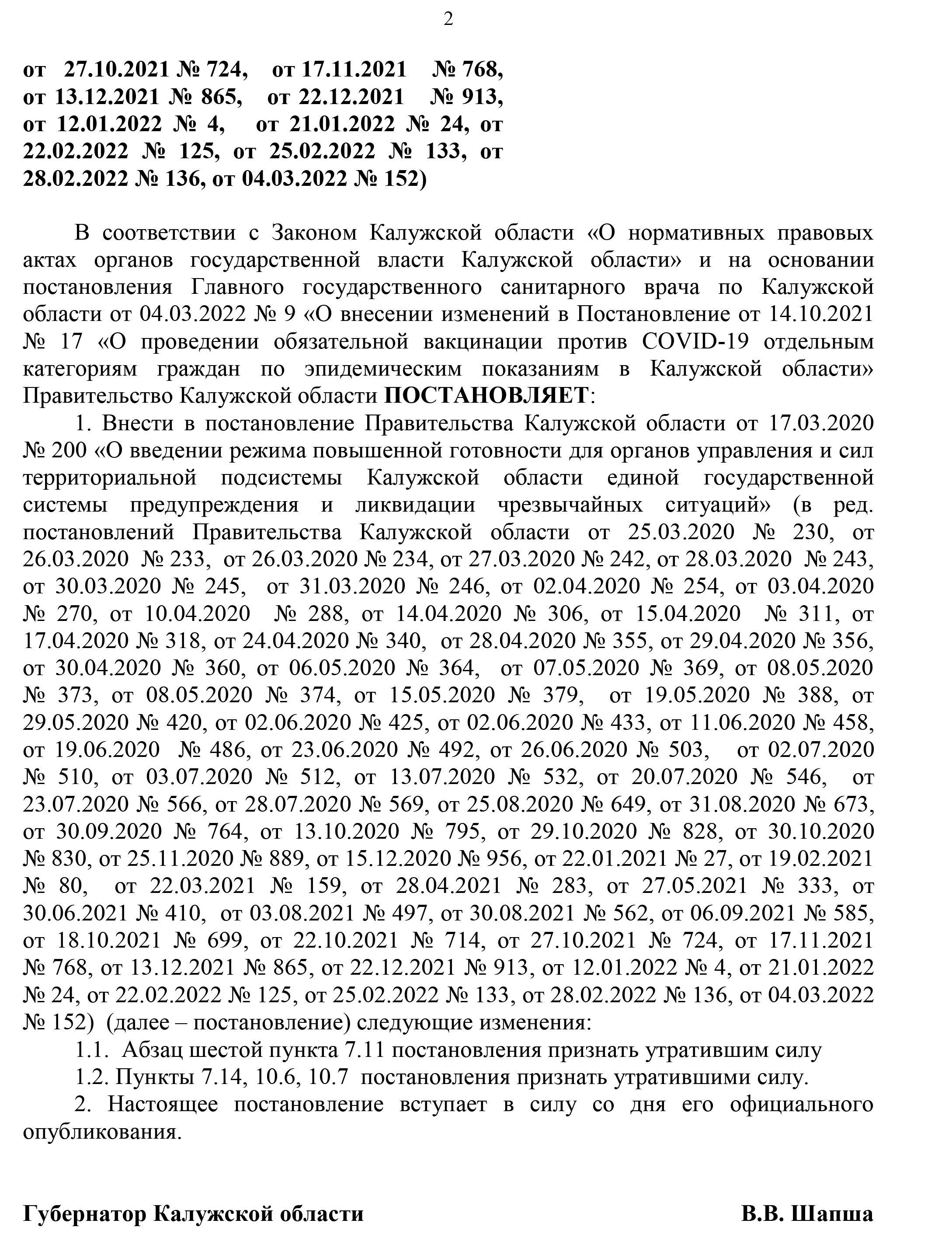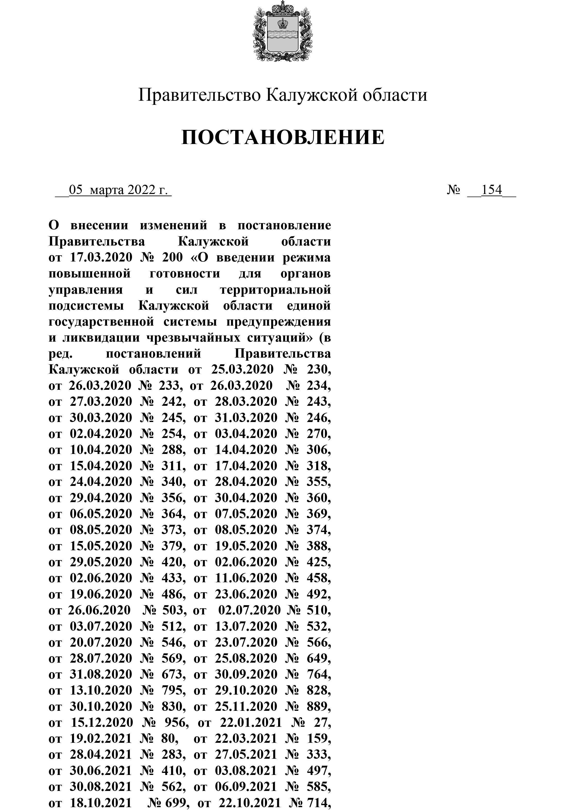 Полный текст постановления правительства Калужской области №154 от 05.03.2022: