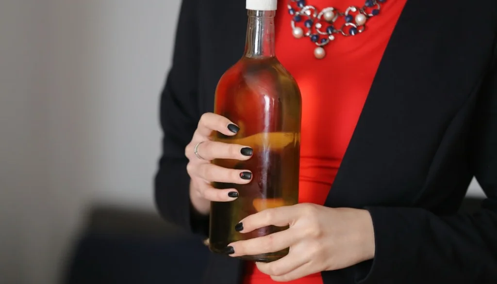 На видео женщина сначала стоит рядом с многоэтажкой. Она держит коляску с младенцем и выпивает прямо из бутылки, в которой, вероятно, алкоголь. Затем женщина катает коляску с ребенком рядом с автомобилями.