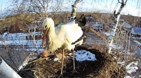 В Калужской области вновь запустили прямую трансляцию из гнезда аистов