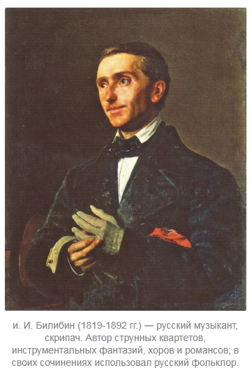 1892 – в возрасте 74 лет в Тифлисе умер композитор и скрипач, современник Михаила Ивановича Глинки, Иван Иванович Билибин. Он родился 15 июня 1818 года в Калуге, где и провел свое детство. Его отец был мелким фабрикантом. Иван Билибин получил в родном городе общее образование, в том числе и музыкальное. Позднее учился музыке у профессора Леопольда Лангера (1802 – 1883). Поступив в Московский университет на медицинский факультет прерывает учебу и целиком посвящает себя музыкальной деятельности. Творческое наследие Ивана Билибина содержит свыше 64 рукописей, среди них 39 романсов и песен.