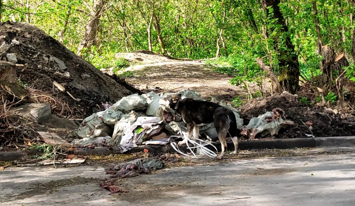 В центре Калуги свалку биологических отходов начали растаскивать собаки