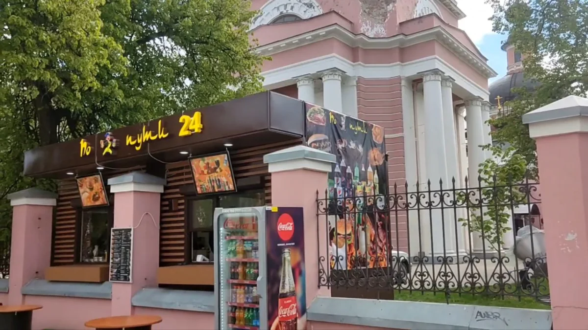 На улице Кирова в Калуге появилась необычная точка общепита. Киоск с шаурмой встроили прямо в ограду церкви Жен Мироносиц. Торговый объект выходит к скверу Медсестер.