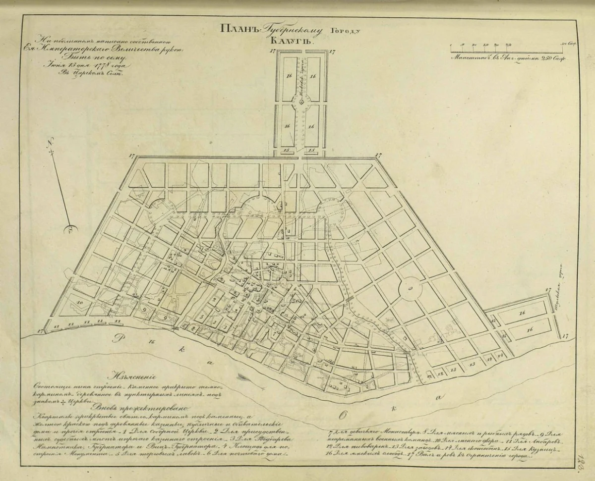 1776 - была проведена первая топографическая съемка Калуги, в следующем году был составлен регулярный план застройки города. Его автором стал П.Р.Никитин, чей талант архитектора Кречетников оценил еще в Твери. План был отправлен в Петербург. Он подвергся значительной переработке и вторично рассматривался 13 июля 1778 г. На этот раз план был утвержден. В нем удачно сочетались приемы веерной, лучевой и прямоугольной композиций.