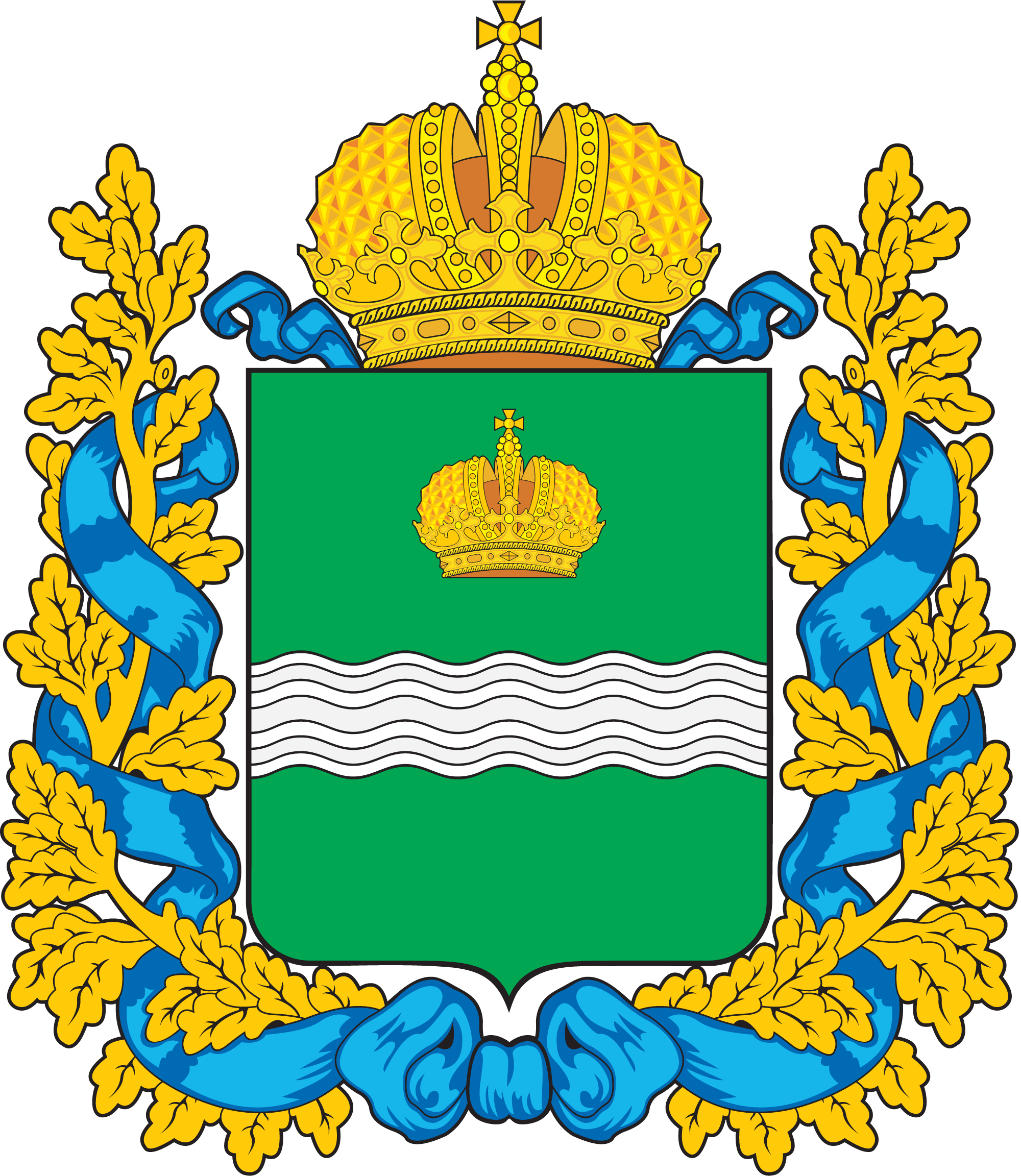 5(17).07.1878 - был утвержден герб Калужской губернии. Описание герба: "В зеленом щите серебряный волнообразный пояс, увенчанный золотою Императорскою короною. Щит увенчан Императорскою короною и окружен золотыми дубовыми листьями, соединенными Андреевскою лентою".