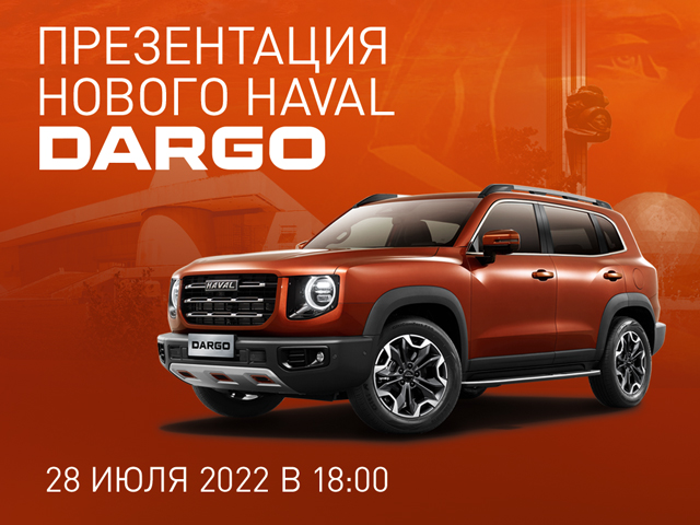 28 июля мы приглашаем всех желающих на презентацию новой модели в наш дилерский центр КорсГрупп. Вы сможете подробно познакомиться с Haval Dargo и примерить на себя роль владельца данного автомобиля, пройдя увлекательный тест-драйв.