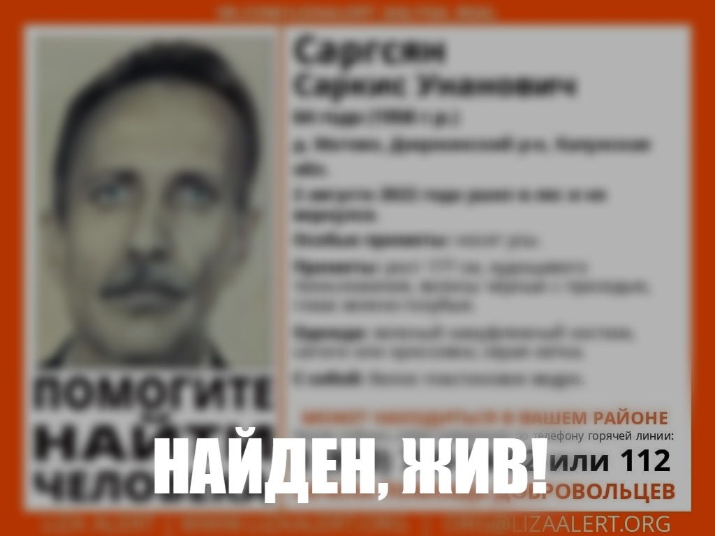 О Саркисе Унановиче Саргсяне волонтеры сообщили: "Найден, жив!"