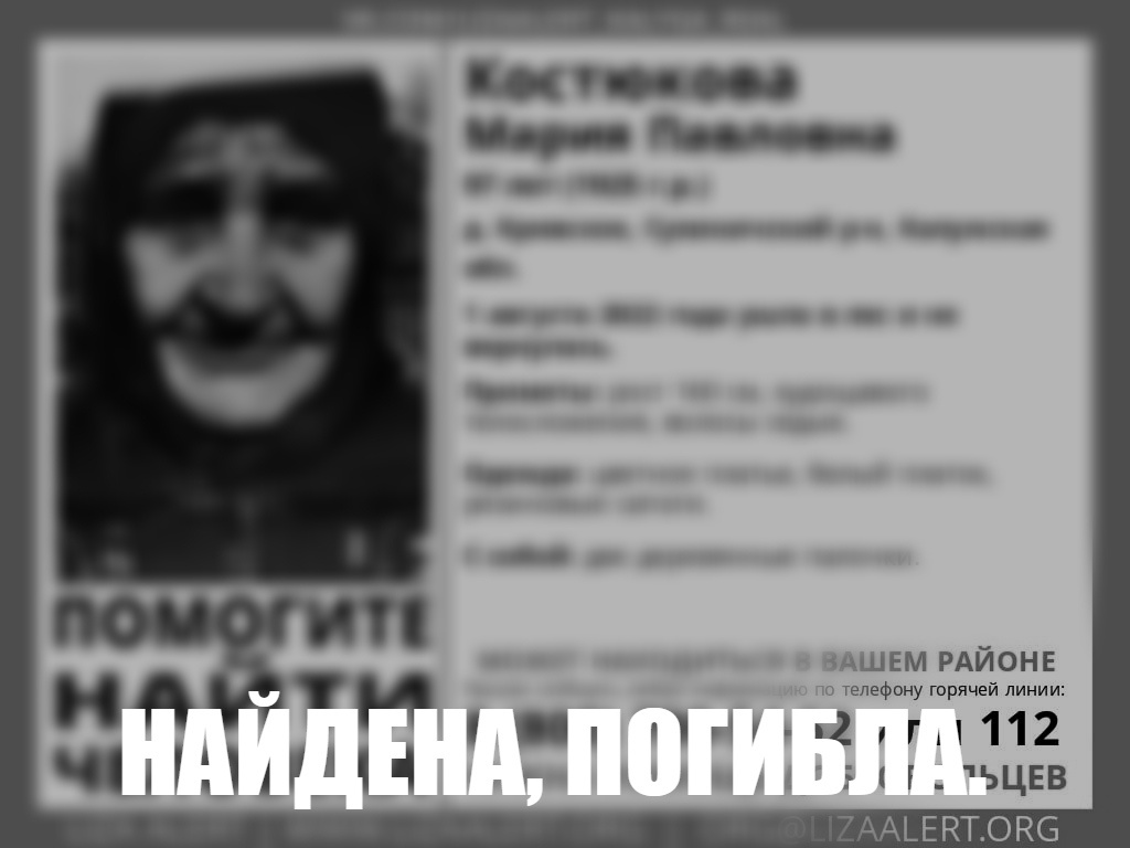И несколькими часами позже поисковики написали о Марии Павловне Костюковой.