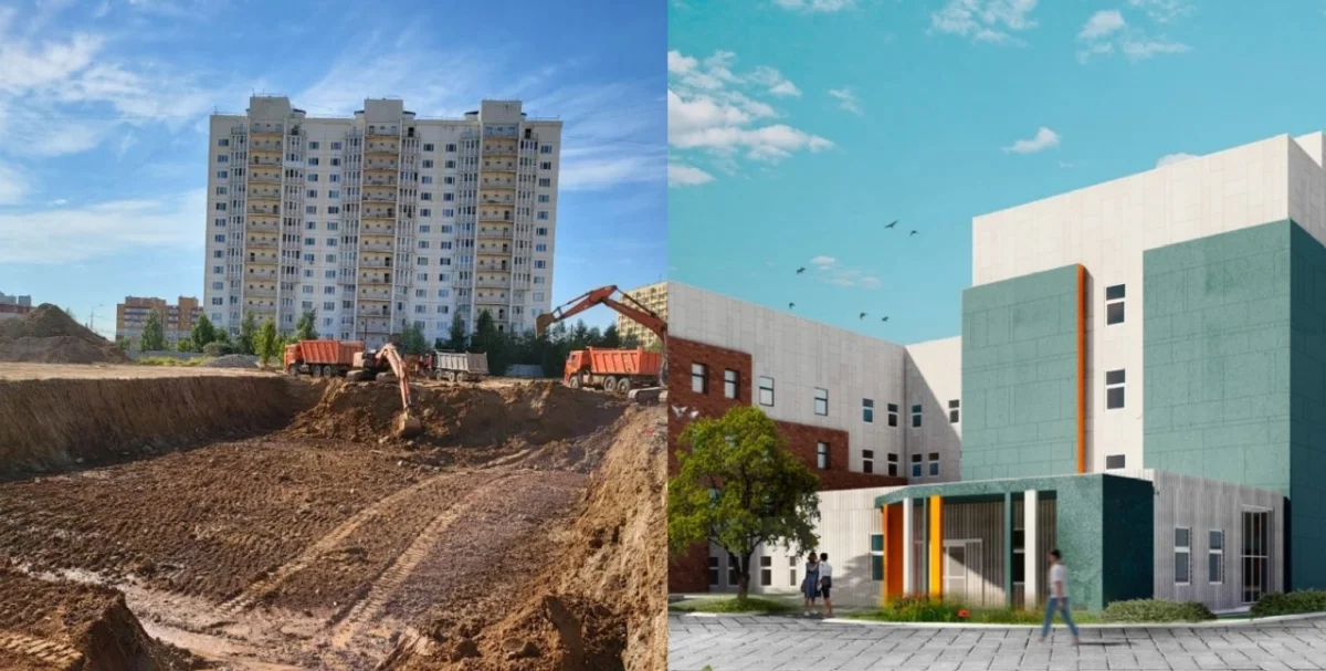 В Калуге продолжается разработка котлована для новой поликлиники на правом берегу Оки. Фото с места проведения работ, а также эскиз проекта в среду, 17 августа, опубликовало региональное министерство строительства и ЖКХ.