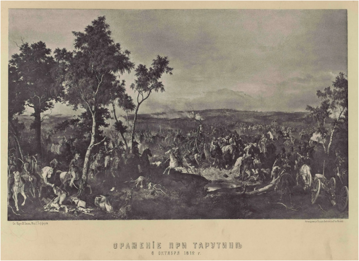 1812 - на границе Калужской и Московской губерний, на речке Чернишня в 8 км от Тарутина, произошло Тарутинское сражение, в ходе которого отряд французов под командованием маршала И.-Н. Мюрата (1767-1815) потерпел серьезное поражение. Это сражение стало для русских войск символом скорой победы над противником, своеобразным прологом, за которым последовала гибель армии Наполеона и завершение Отечественной войны 1812 года.