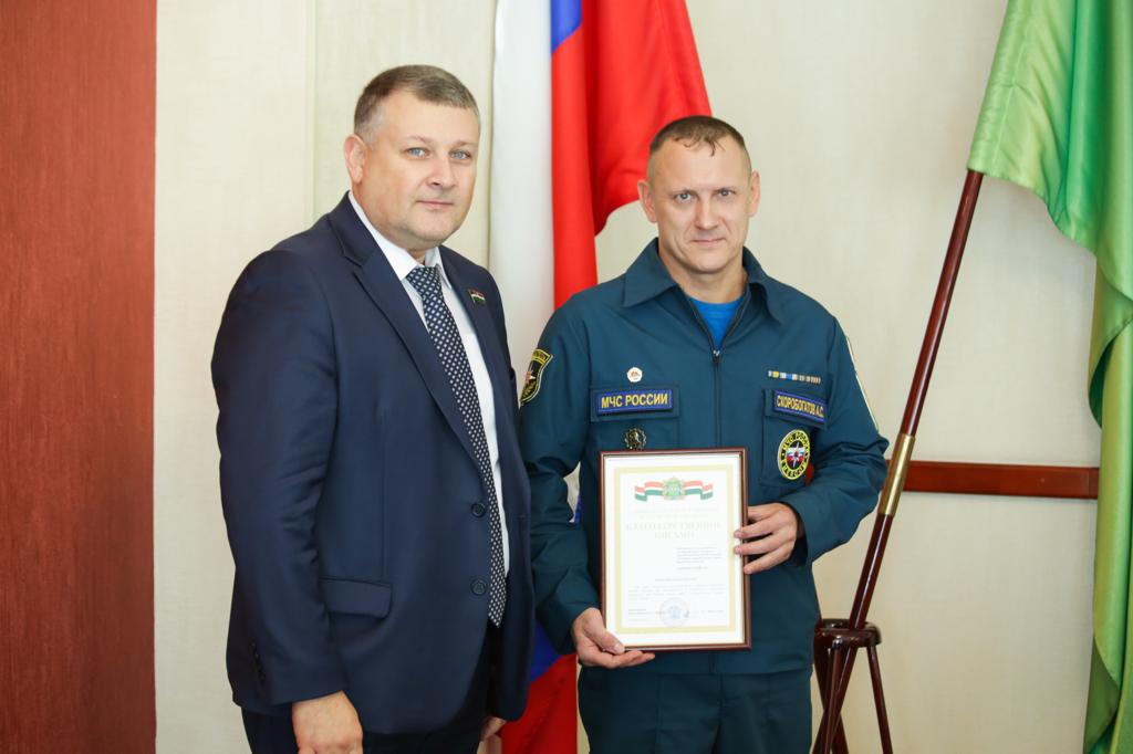 Также на заседании комиссии депутат вручил благодарственные письма Законодательного Собрания работникам МЧС за стойкость, героизм и надлежащее исполнение служебного долга и обязанностей дежурных спасателей, которые несли службу во время ЧС.