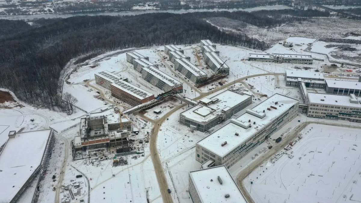 Ведется строительство спортивного комплекса и досугового центра, выполняются работы по возведению переходов между корпусами, устройству внутренних перегородок, инженерных коммуникаций, благоустройству территории и отделочные работы.
