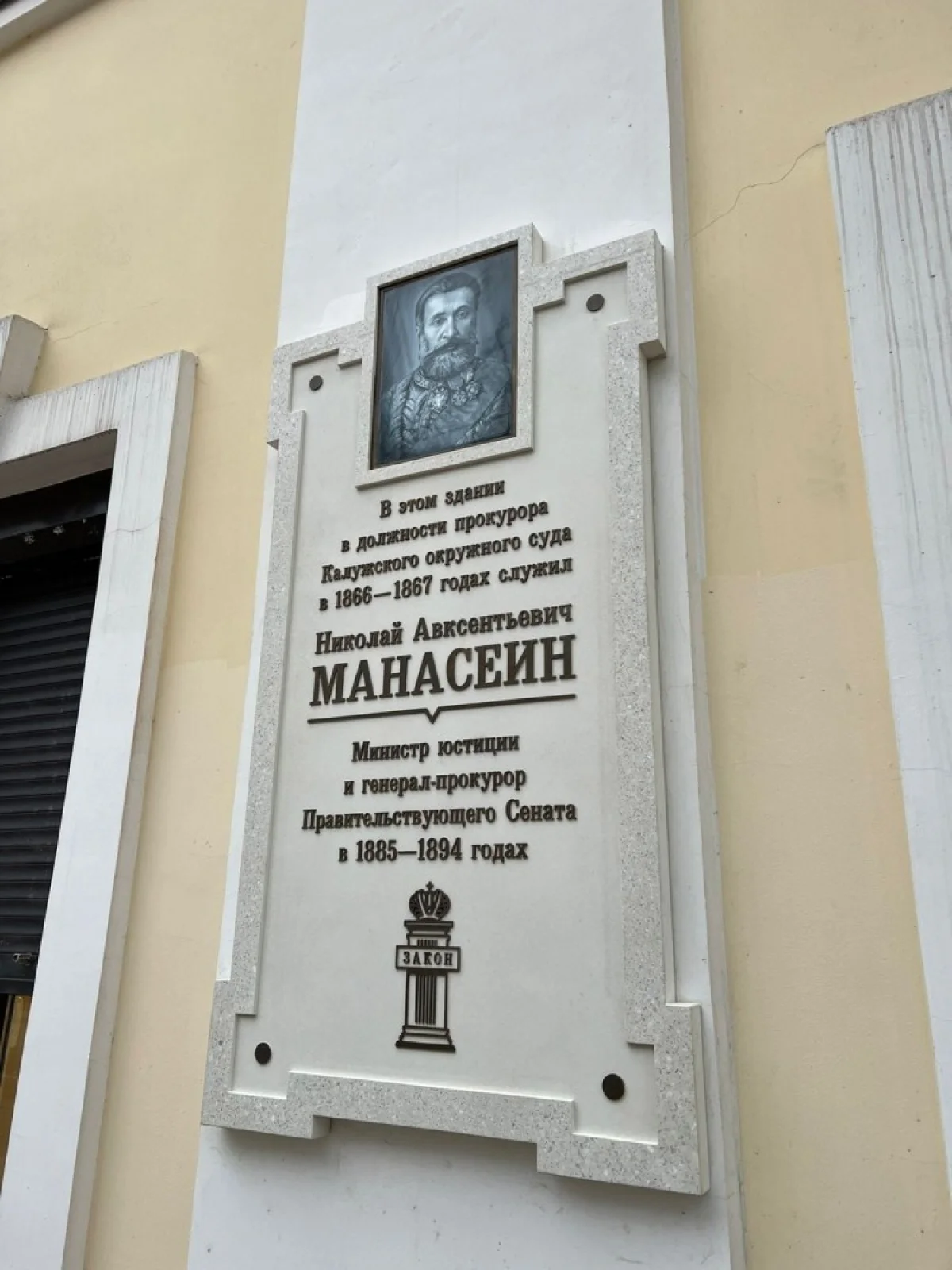 В четверг, 12 января, в Калуге торжественно открыли мемориальную доску Николаю Манасеину - русскому государственному деятелю конца XIX века, министру юстиции и одновременно генерал-прокурору Правительствующего сената, члену Государственного совета. Об этом сообщил губернатор Владислав Шапша.