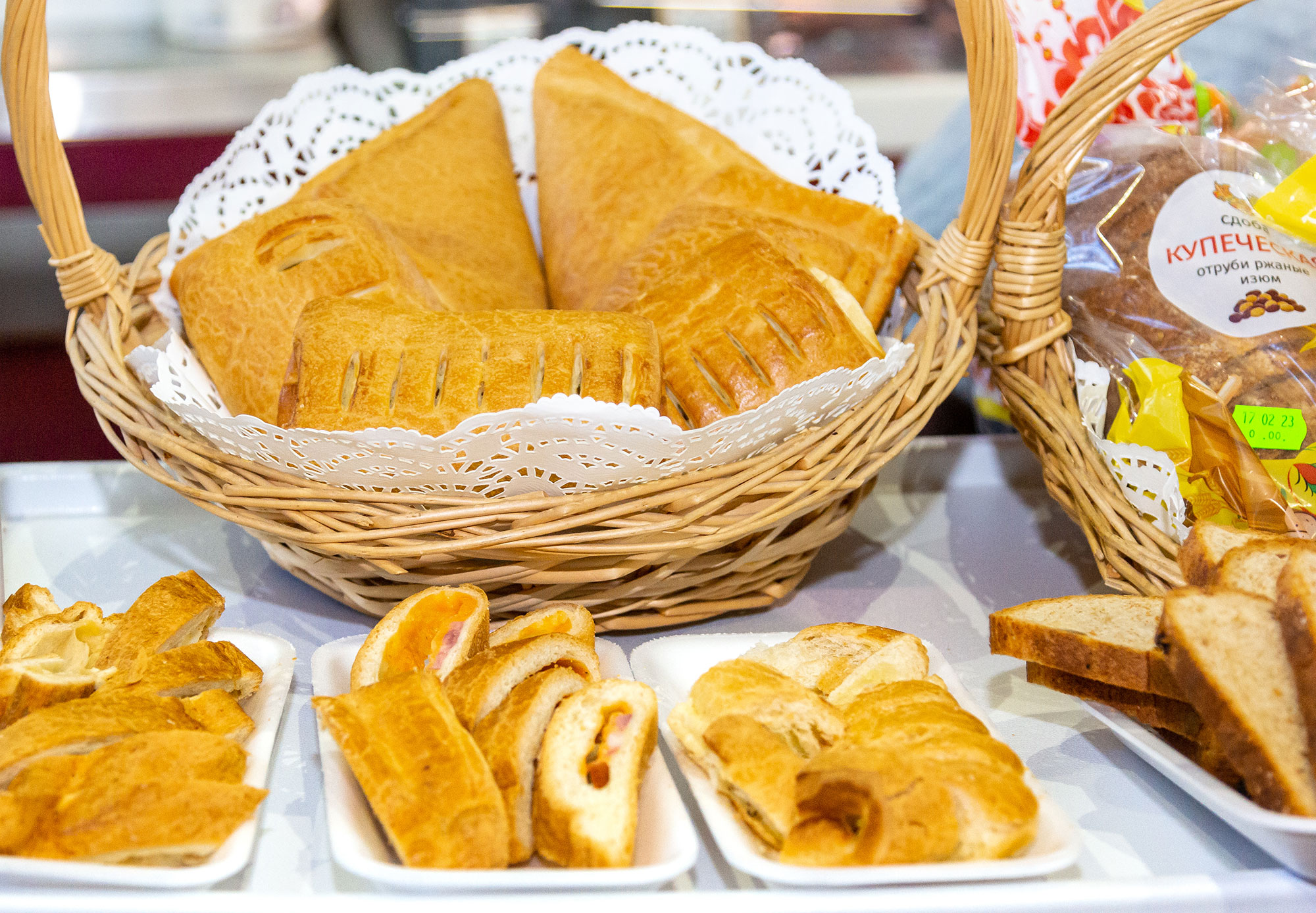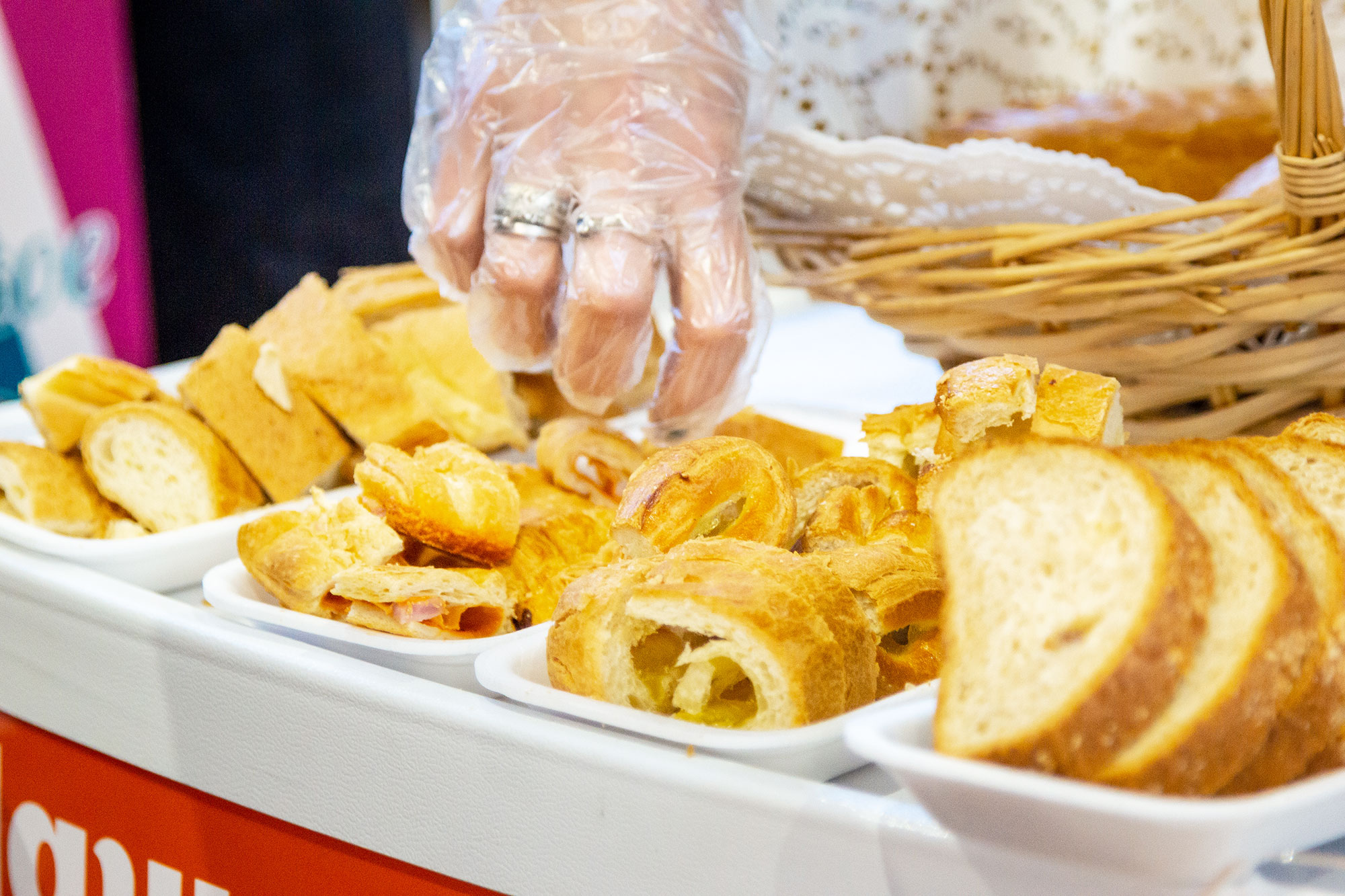 Калужский хлебокомбинат предложил на дегустации и свои фирменные слойки: сытная «Пеновани» с ветчиной и сыром, «Бугаца» с грибами и сыром, сладкая «Фаготтини» с грушей и другие.