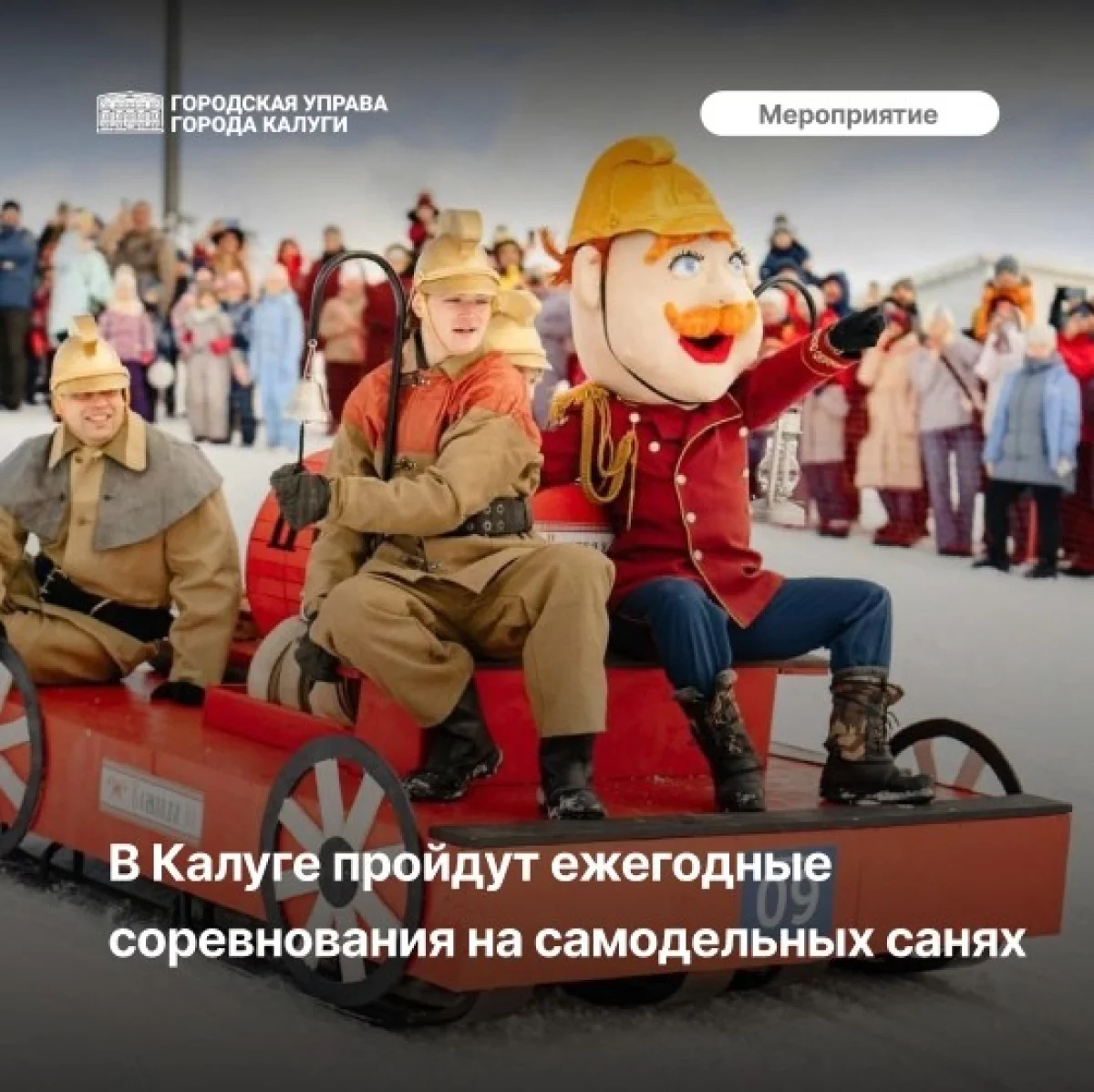 В пятницу, 24 февраля, городская управа Калуги сообщает о предстоящих ежегодных веселых съездах на самодельных креативных санях.