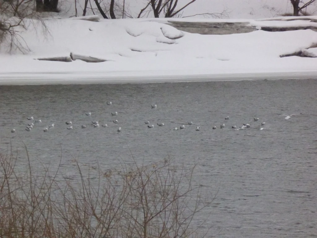В районе Квани он наблюдал 26 февраля 48 белоголовых чаек. Река в этом месте уже очистилась ото льда.