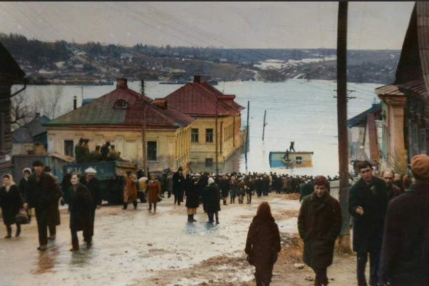 Но сегодня мы предлагаем посмотреть на фото разлива, когда река в Калуге поднялась на 15 метров. Это случилось весной 1970 года.