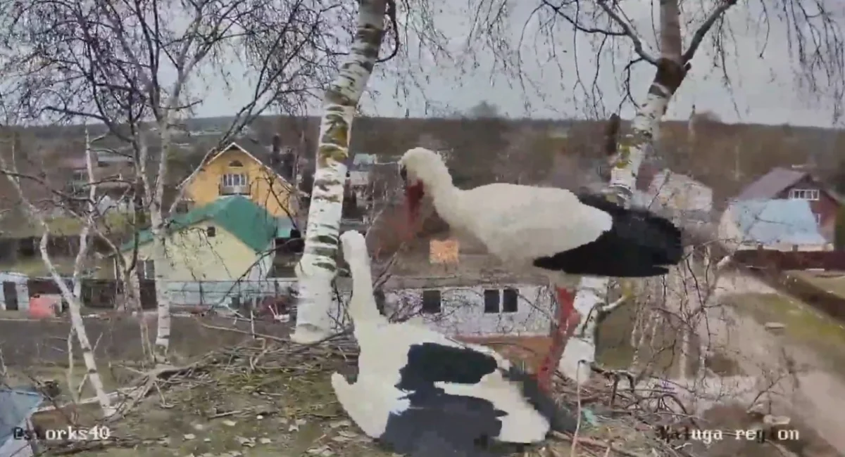 Как мы уже рассказывали, в пригороде Калуги в марте вновь заработала онлайн-камера, установленная в гнезде аистов. Ее третий год подряд устанавливает любитель птиц Дмитрий Покревский.