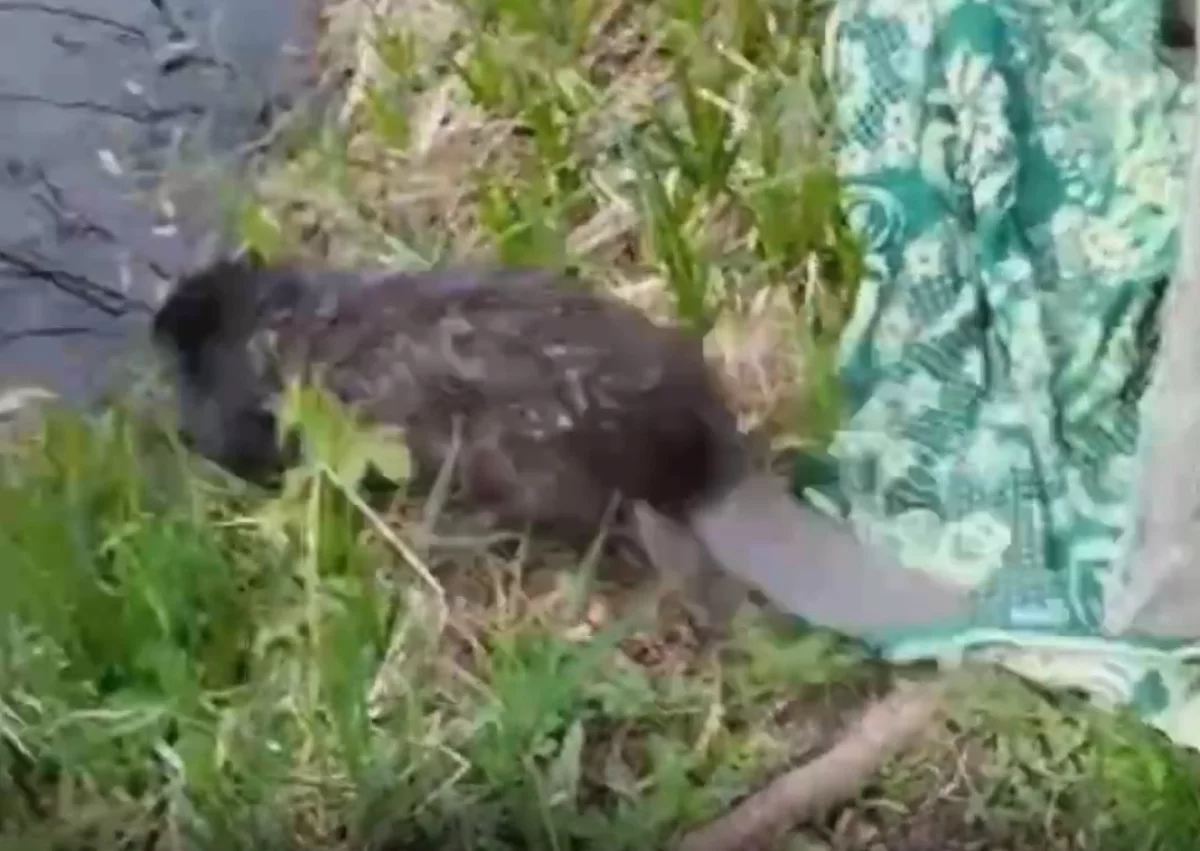 Бродячие собаки загнали бобра в центр Юхнова