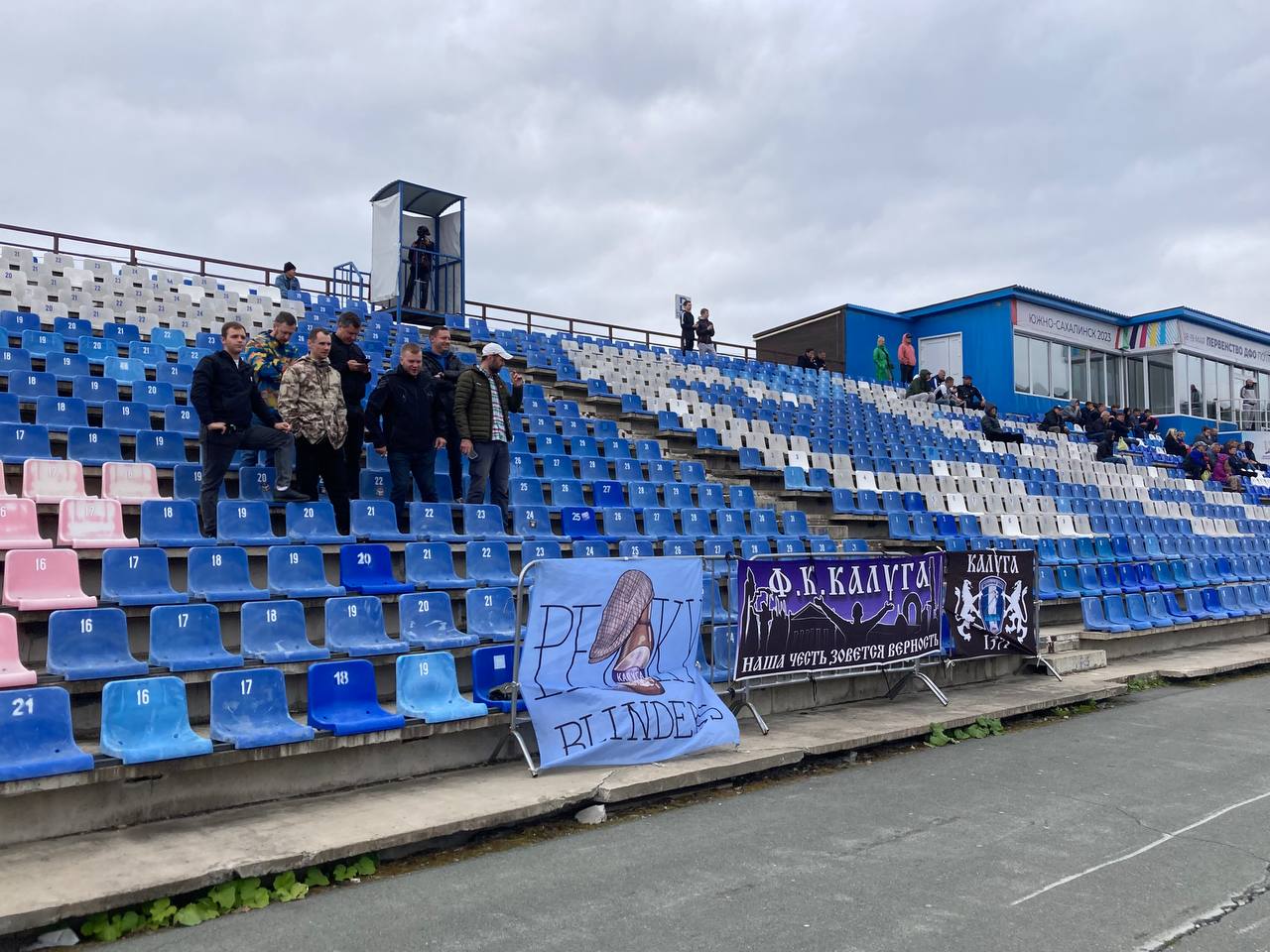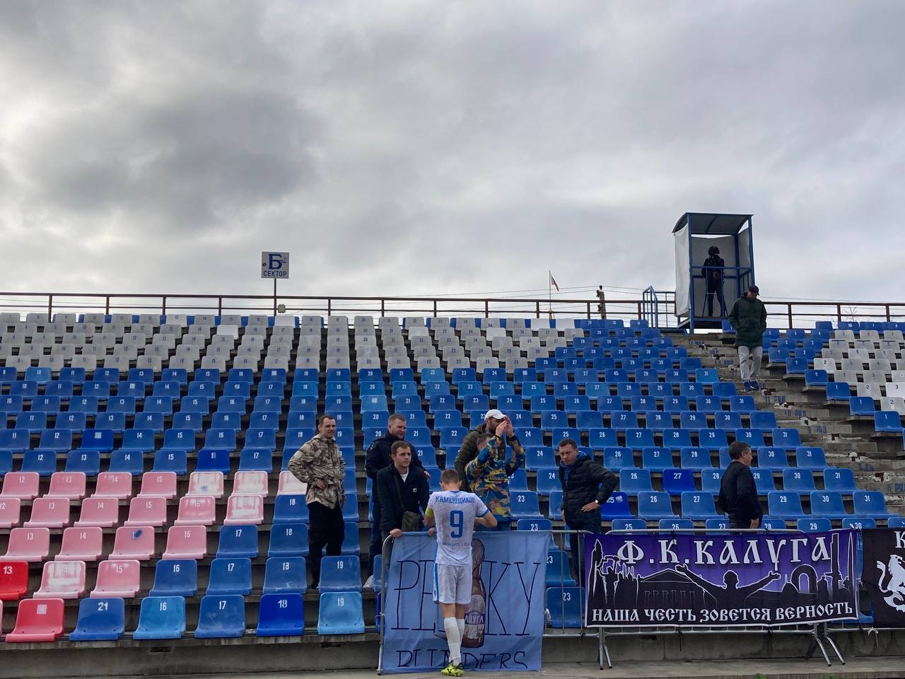 С трибун стадиона «Спартак» уверенно раздавалось: «Вперед, сине-белые!». На игру приехали семь болельщиков «Калуги».