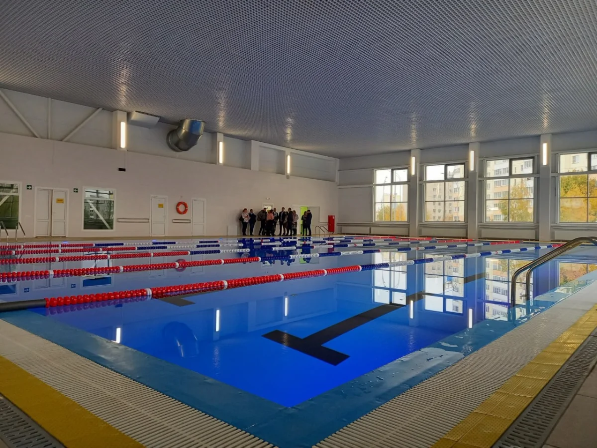 В одноэтажном здании площадью 3880 квадратных метров разместились два бассейна – на 10 метров и 25 метров.