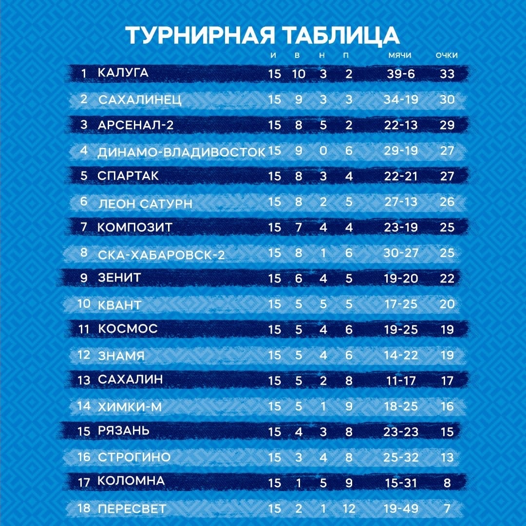В турнирной таблице калужане лидируют, а «Коломна» занимает 17 место.