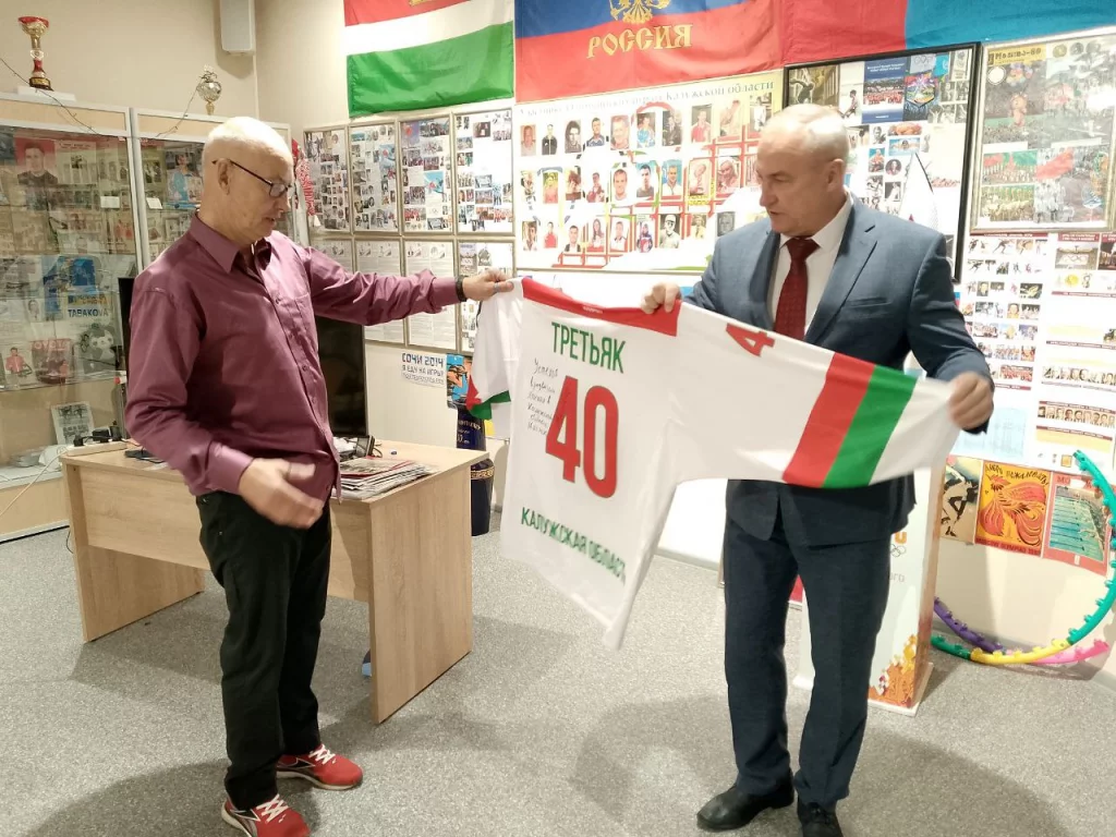 - В памяти еще свежи эмоции, которые были 16 января, когда на Красной площади в Москве проходил матч между командой Калужской области и комендатурой Кремля, - рассказал 7 мая министр спорта региона Олег Сердюков. - Приветствовали гостей и участников почетные гости, в их числе Владислав Третьяк - наш выдающийся хоккеист, лучший вратарь всех времен и народов. Тогда мы от Калужской области подарили ему свитер с надписью на память. Владислав Алексеевич решил его вернуть, но уже со своей надписью: «Успехов в развитии хоккея в Калужской области».
