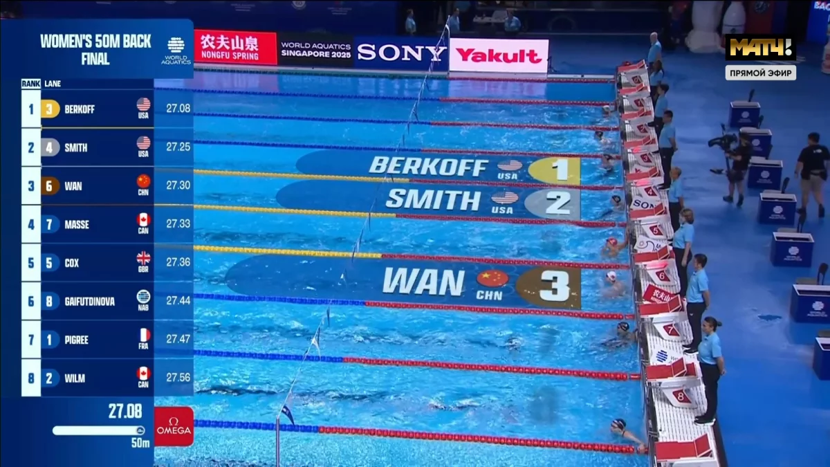 В Сингапуре днем в четверг, 31 июля, прошел решающий заплыв на дистанции 50 метров на спине.