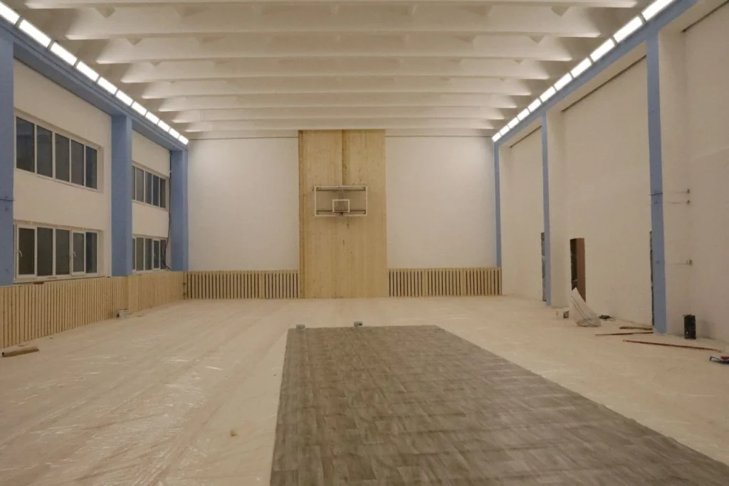 Там заменили систему отопления, обновили потолки, стены и пол. Позже нанесут разметку.