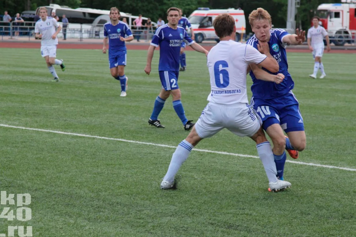 Первый тайм калужане проиграли с «сухим» счетом 0:2. Во втором наметился было перелом после того, как бывший «авангардовец» Карен Саргсян за 9 минут до окончания игры с пенальти сократил разрыв. Однако курян это не смутило, и они продолжали играть слаженно, без суеты. И на 89-й минуте, отчаянно пытаясь спасти положение, «космонавты» поплатились - курский нападающий вышел один на один с Михаилом Опариным – 1:3. Окончательно расстроенные болельщики стали дружно покидать трибуны стадиона. Однако судья решил сохранить интригу, добавив к основному времени еще 5 минут! И вот тогда немногие оставшиеся на трибунах фанаты стали свидетелями отчаянной битвы. «Космонавты» были близки к тому, чтобы уйти от поражения. Саргсян, как лев, боролся до последнего, но курские защитники чудом вынесли мяч из своей штрафной. Спустя мгновения Баранов ударом из-за пределов штрафной сократил разрыв – 2:3! Он же был близок к тому, чтобы сравнять счет, но… промахнулся! Увы, времени не хватило.