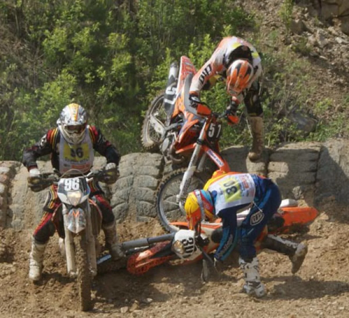 Во время гонки участникам надо дважды подняться и спуститься с крутой горы, преодолеть барьер из шин высотой в человеческий рост, завал бревен, каменистую насыпь и несколько других препятствий. Соревноваться на мотогонки в стиле «эндуро-кросс» приехала сотня гонщиков с разных концов страны: из Орла, Тулы. Краснодарского края, Тамбова и других городов.