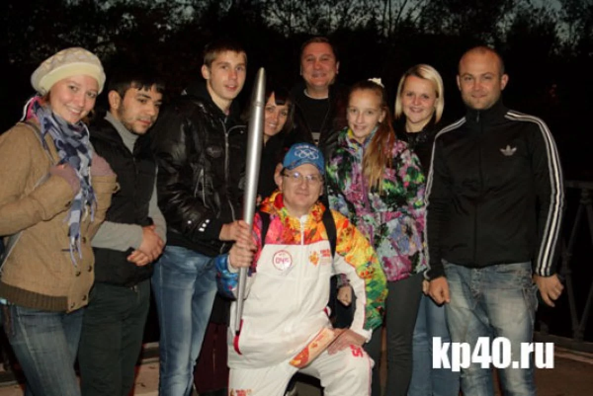Калужане фотографировались с факелоносцами на память