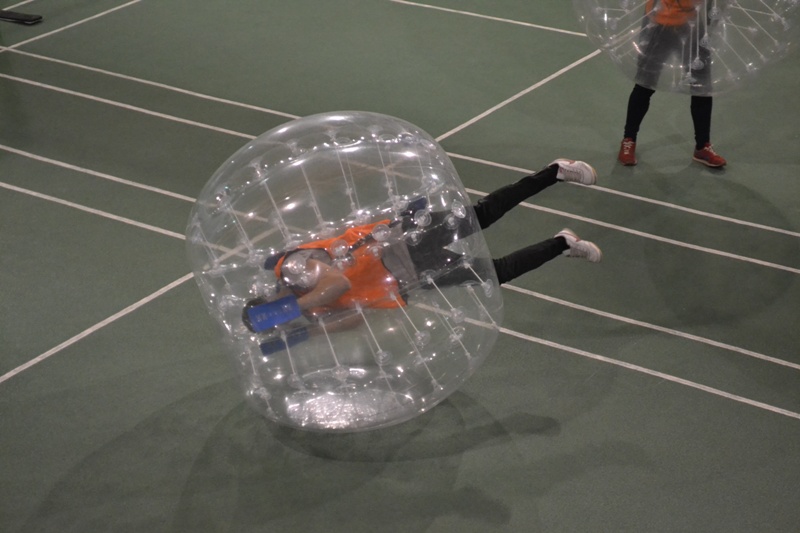Я не смогла отказаться от предположения очутиться внутри человеческого шара. Ощущения непередаваемые, даже не знаю с чем их можно сравнить. Первые секунд 30 давит вес шара – 10-13 кг. Потом к нему привыкаешь и начинаешь выделывать кренделя: биться об стены, стоять на голове, просить рядом стоящих ребят подтолкнуть тебя. Да, теперь-то я точно знаю, каково это - быть резиновым мячом.