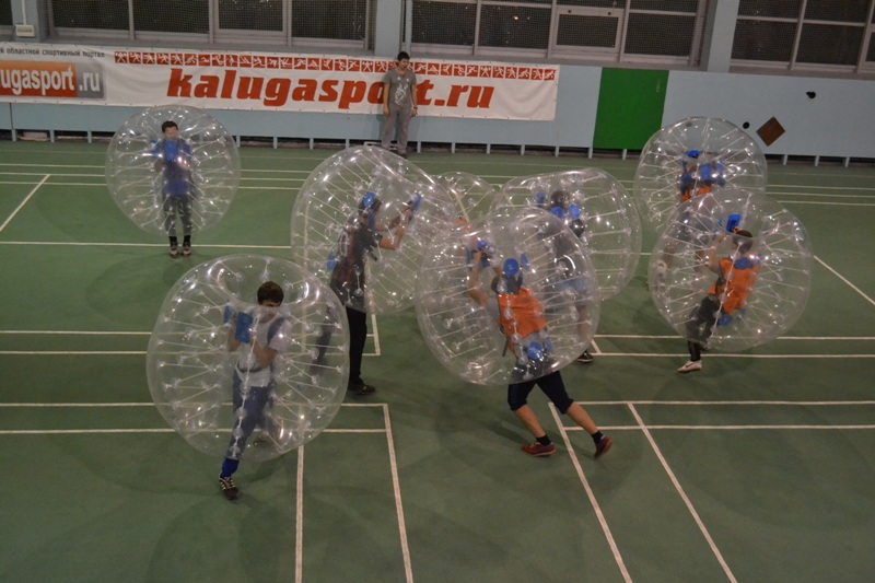 Он может быть разных размеров - от 1,2 до 1,8 метра в диаметре, в зависимости от роста участников. Калужане закупили средние шары – 1,5 метра. Они выдерживают вес до 90 кг. Изготавливаются шары из полиуретана. Надуваются специальным насосом буквально за пару минут.