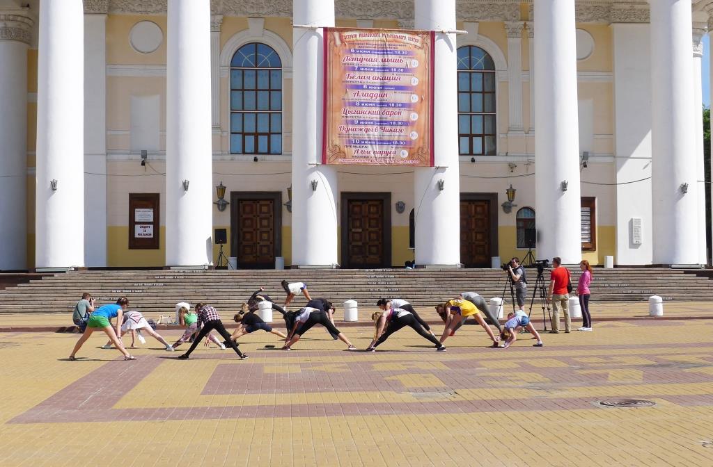 Однако первое подобное мероприятие не вызвало ажиотажа у горожан. Перед театром собралось всего около 20 человек. Зарядка продлилась примерно 30 минут.