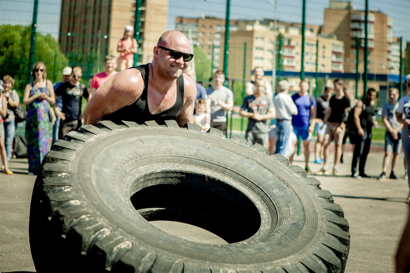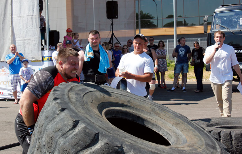 На втором этапе спортсменам предстояло поднять и перекатить покрышки от тяжеловесных грузовиков.