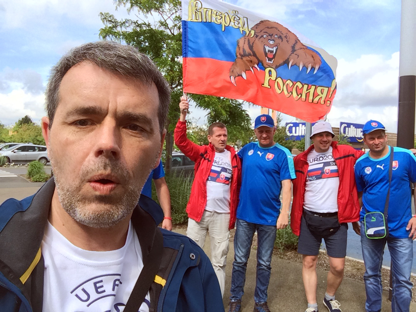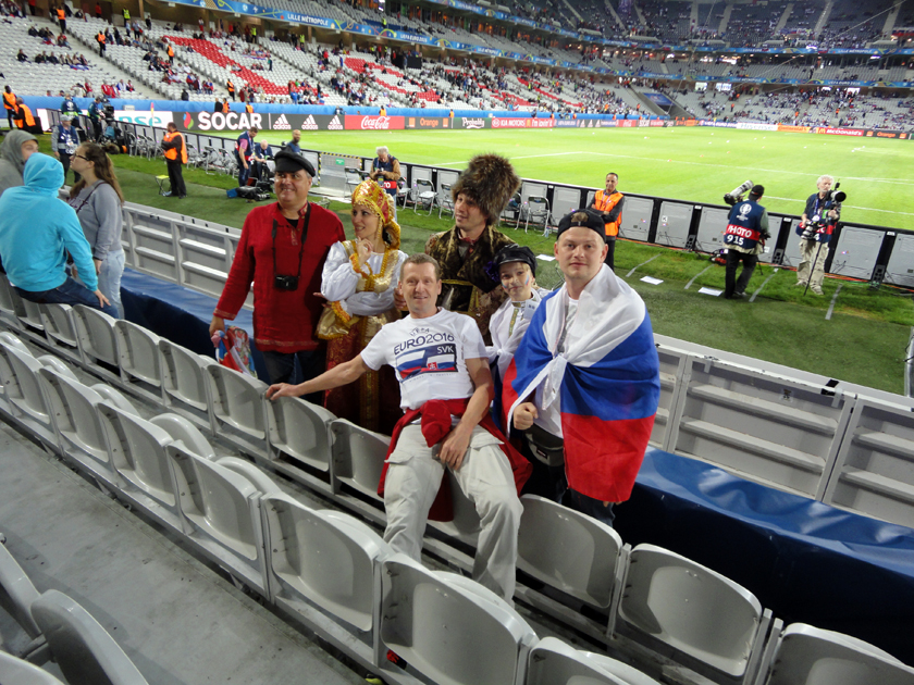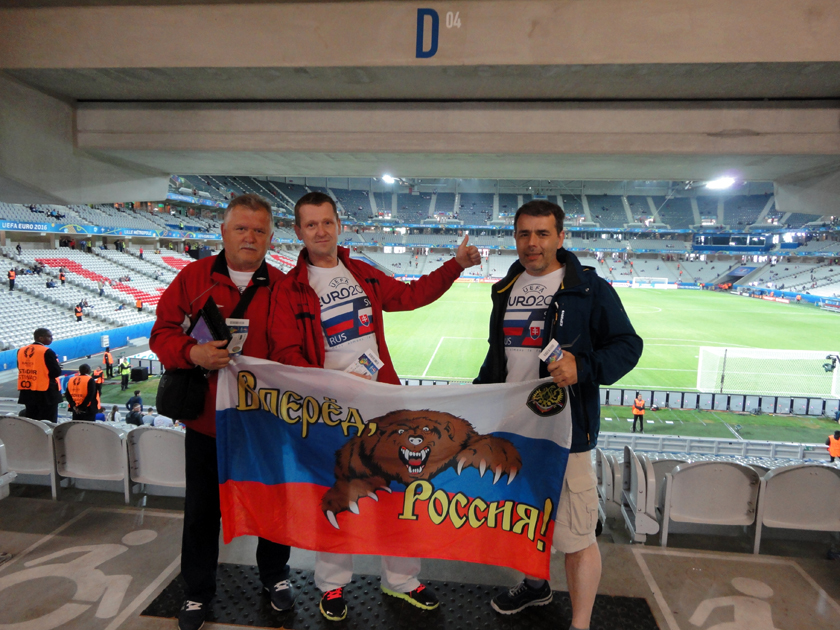 - Нам достались места за воротами российской команды. Словацкие болельщики разместились на противоположных трибунах. Видимо, УЕФА при продаже распределил билеты таким образом, чтобы избежать конфликтов между российскими и словацкими болельщиками.