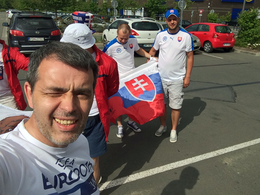 - Никакого негатива мы не чувствовали. Все настроены очень благожелательно, от нас никто не шарахался. Хотя поначалу, когда мы ехали по территории Польши, определённые опасения были. Бытует мнение, что поляки недолюбливают россиян. Из-за этого мы не сразу выставили на автомобиле специальную табличку, сделанную на французском и английском языках: «Евро – 2016. Наша машина едет на чемпионат». Не сразу надели и фирменные футболки, сделанные специально для этой поездки. Впереди написано: «Евро-2016. Россия – Словакия» - и по-французски: «Мы любим футбол». На спине сделали надпись: «Калуга – Лилль. 2600 км». В первый раз вышли в наших майках «в народ», когда приехали в Гувье. Одну футболку подарили знакомому, который приютил нас. Он тут же надел её и два дня ходил в ней на работу.