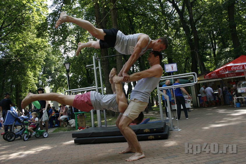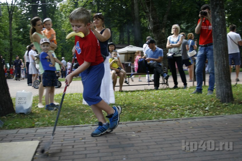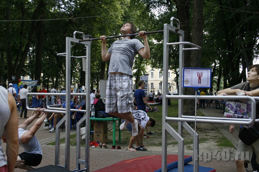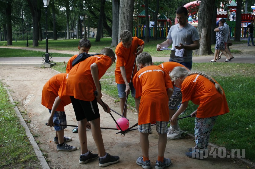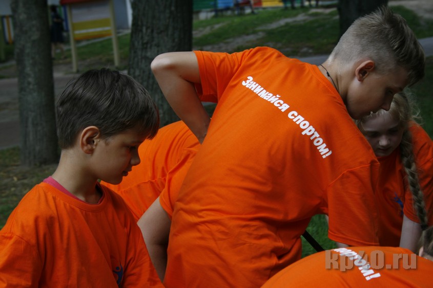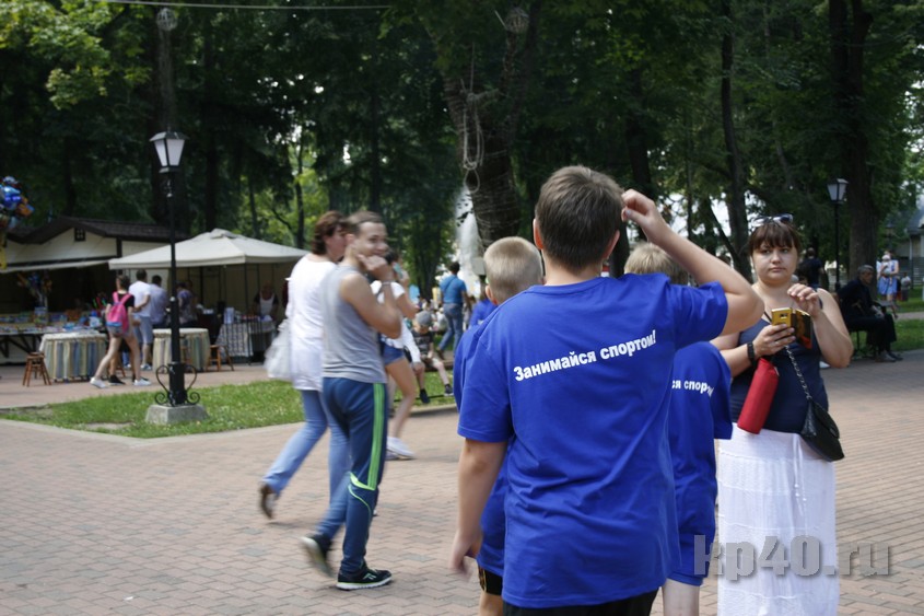 Во время праздника я постоянно сталкивалась в разных частях парка с мальчиками и девочками в разноцветных футболках с надписью «Занимайся спортом!» Оказалось, что это участники спортивного квеста, которым нужно было выполнить 11 заданий на ловкость и смекалку.