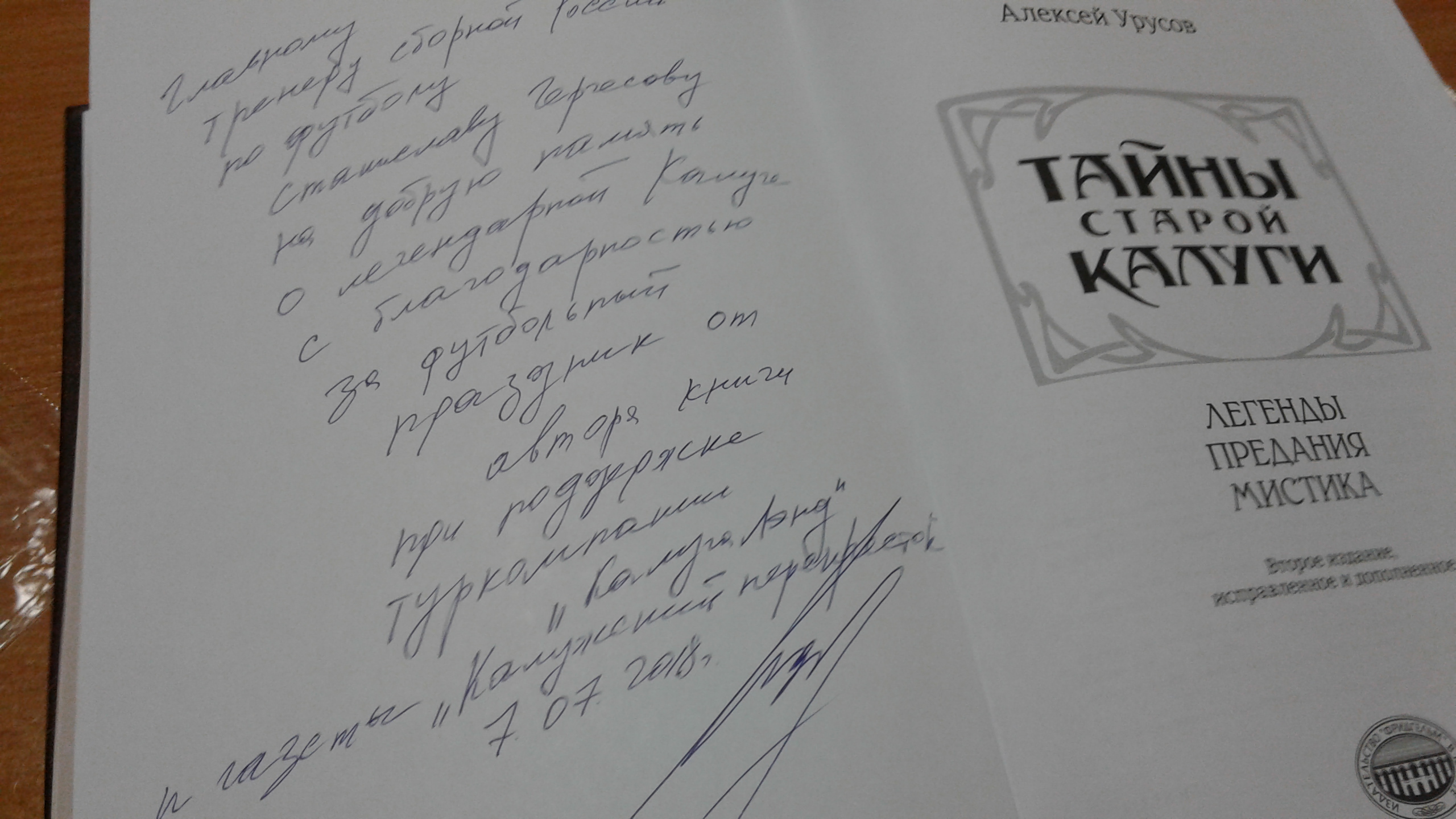 Черчесову и игрокам сборной подарили экземпляры книги «Тайны старой Калуги»