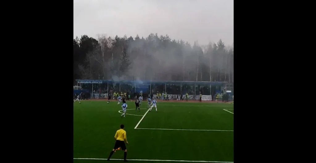 В социальных сетях выложены ролики, как разъярённые фанаты жгут стулья на стадионе, зажигают фаеры. Самых ярых из них сотрудникам МЧС пришлось успокаивать водой.