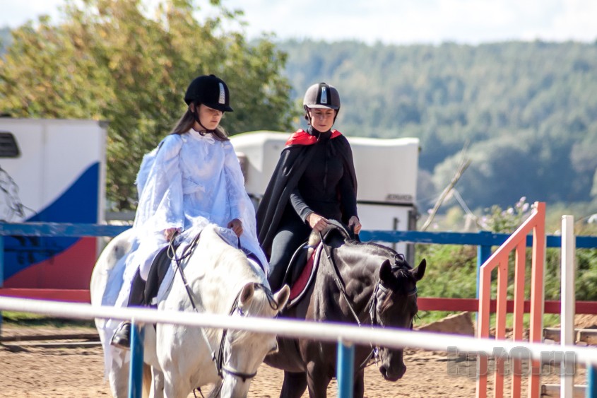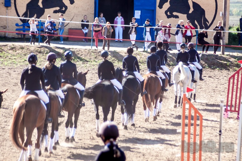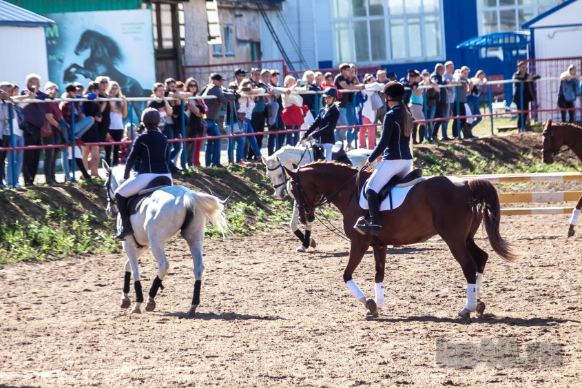 Перед спортивной программой прошли показательные выступления тренера спортивной школы олимпийского резерва Ирины Красновой на Параде, недавнего призёра Всероссийских соревнований Елизаветы Недобежкиной на Фаворе и грандиозное синхронное дефиле полутора десятков воспитанниц на своих грациозных скакунах.