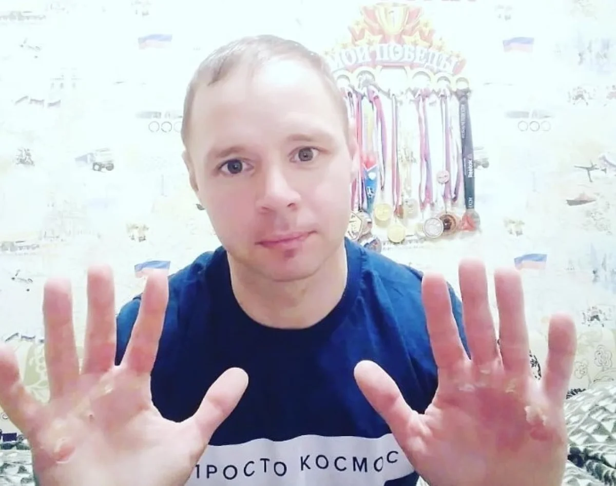 Молодой человек в кровь стёр руки, но нисколько об этом не жалеет.