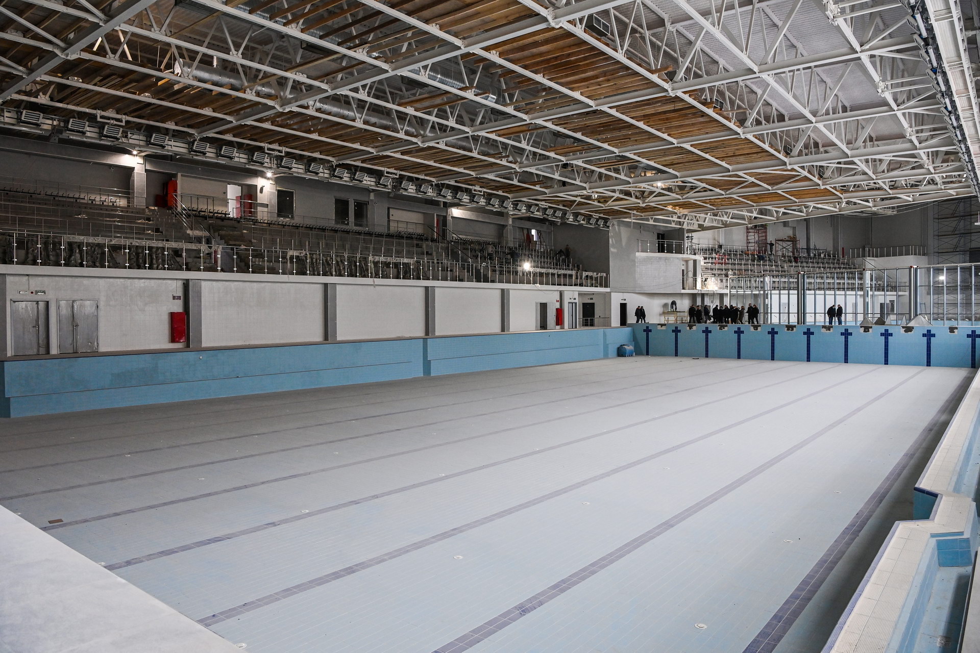 Также в марте завершатся работы в зданиях водного комплекса, где сейчас уже началось обустройство зрительских трибун.