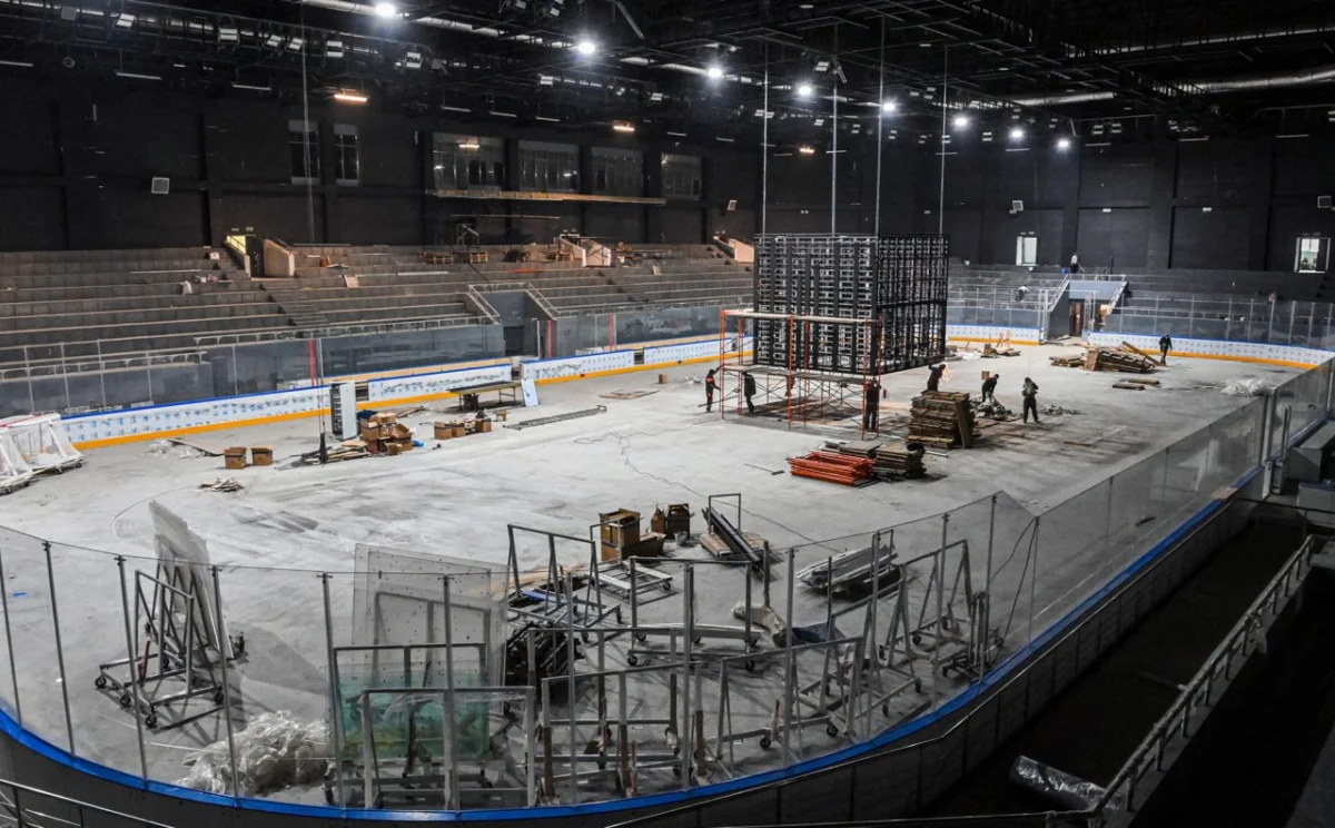 В здании ледовой арены закончен монтаж медиакуба, идет сборка экранов. В середине недели начнется техническая заливка льда. В ближайшее время приступят к установке кресел, монтаж которых завершат до 25 марта.