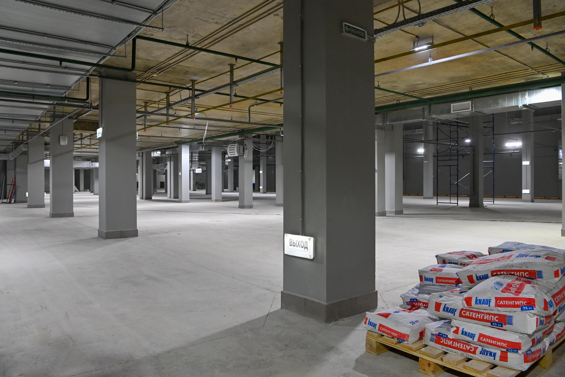 Полностью завершена отделка подземной парковки. Также предусмотрена территория и для велопарковки.