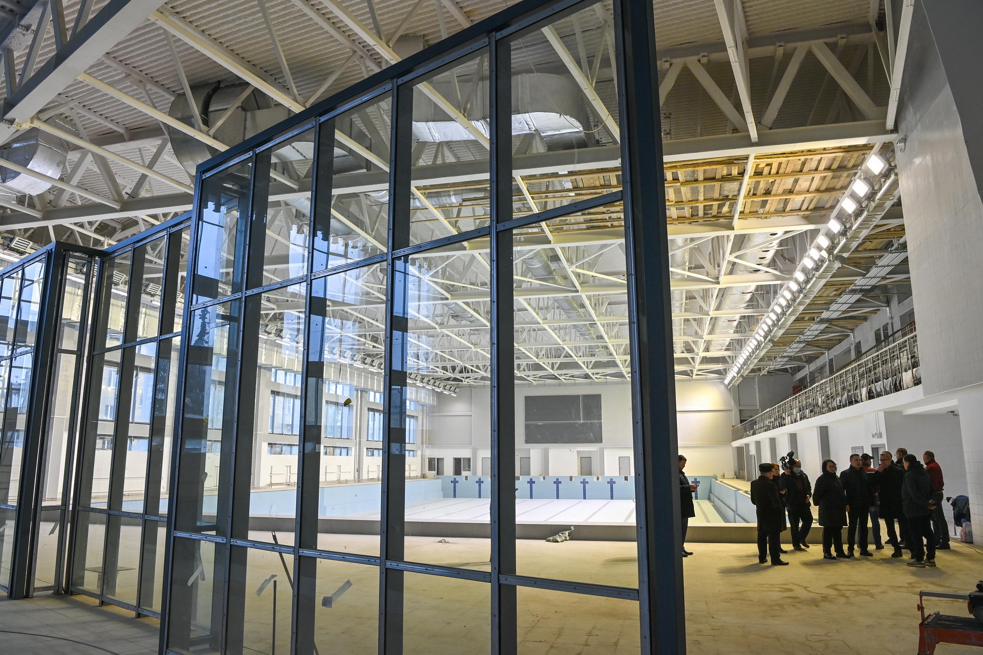 Над ледовой ареной в тестовом режиме начал работать медиакуб, смонтирована акустическая система. На трибунах завершена установка кресел.