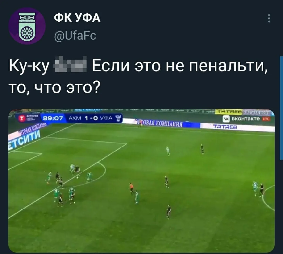 - Приносим извинения за неточность в предыдущем посте. СММ-щик хотел обратиться к арбитру: «Кукуляк (Т9)! Если это не пенальти, то что это?», – говорится в разъяснении «Уфы». - Клуб принял во внимание глубокие душевные страдания сотрудника, допустившего ошибку. Он отстранен от твиттера «Уфы» на 1 календарный матч.