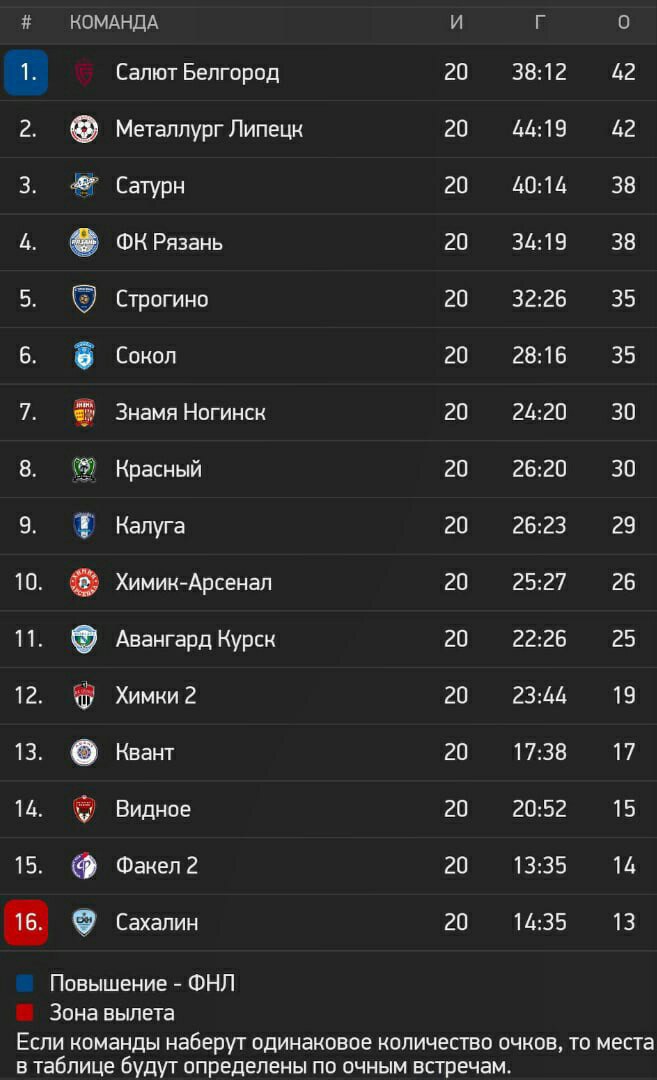 Турнирная таблица 3 группы первенства России среди команд ПФЛ